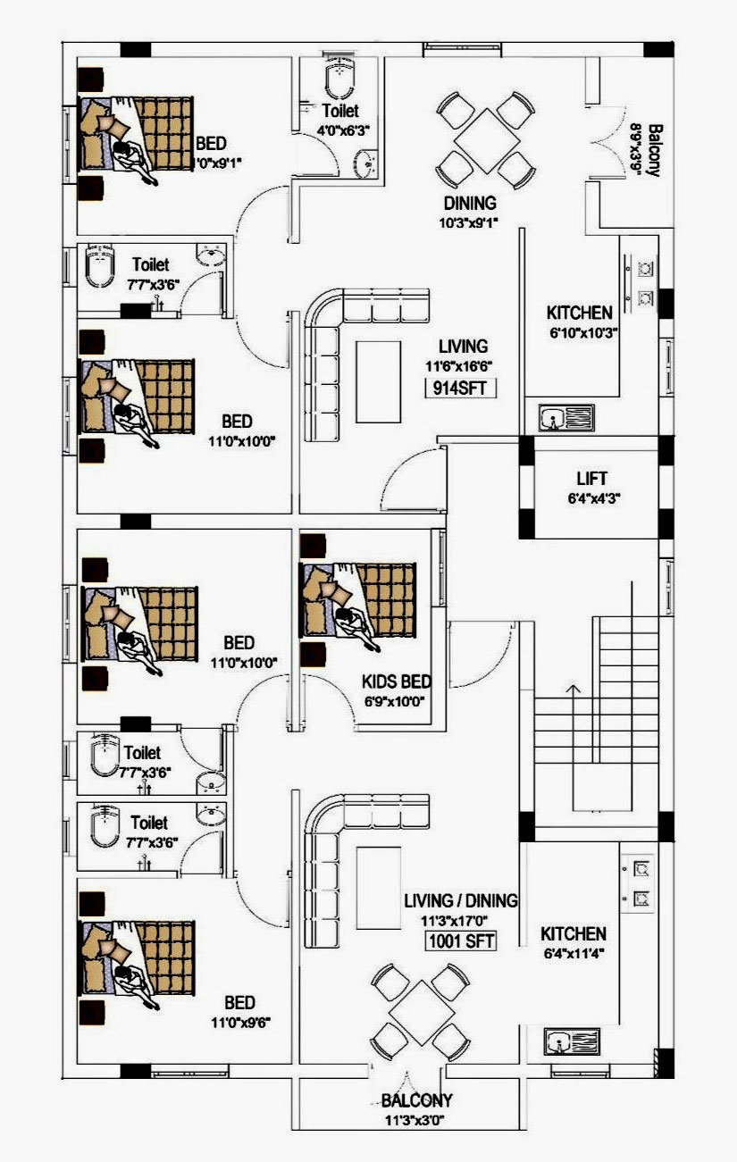 The building will be constructed over a Plot of 2220 Sq.ft.
