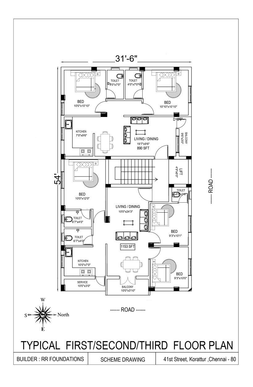 The building will be constructed over a Plot of 2088 Sq.ft.